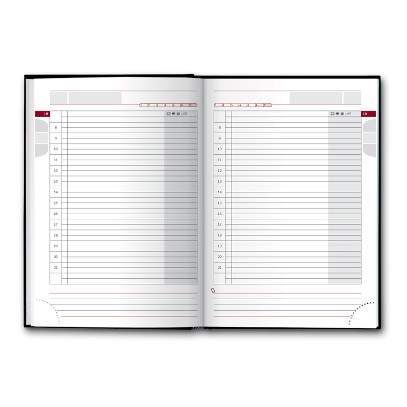 Бумага: белая 70 г/м2 Premium offset, количество страниц: 320, размер: 145 х 206 мм. Русский язык, дополнительный - английский, двухцветная печать: чёрный и бордовый. Две вклеенные закладки, перфорированный отрывной уголок. Телефонная книга с русским алфавитом 16 страниц. Карты Беларуси и Минска со схемой метро. Обложка: Тренд.