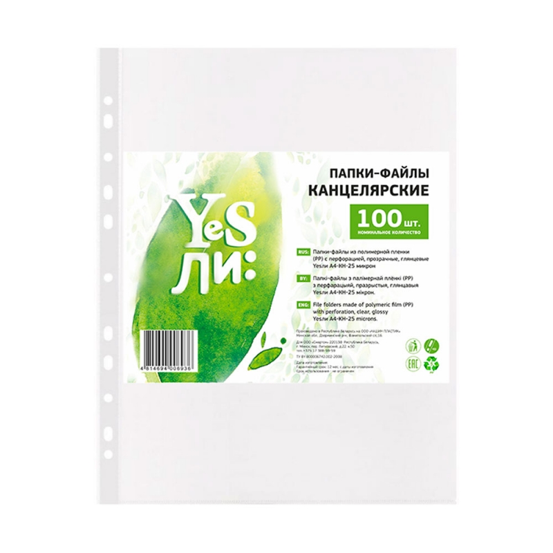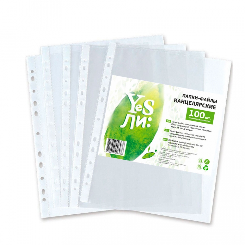 Файлы "Yesли" для ежедневного использования. Благодаря линии перфорации со множеством отверстий подходит для хранения документов в папках с арочным механизмом и в папках на кольцах. Отличаются кристальной прозрачностью и равномерной плотностью. Вместимость: до 40 листов плотностью 80г/м.
