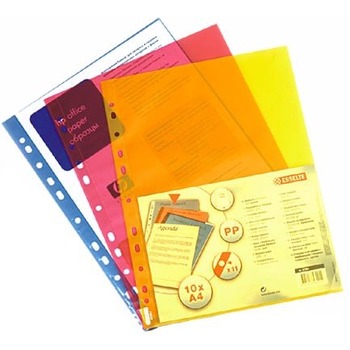Папка - вкладыш с перфорацией, толщина 55мкр., формат А4, цветная, используется для подшивки и хранения документов, упаковка 10шт. Благодаря линии перфорации со множеством отверстий подходят для хранения документов в папках с арочным механизмом и в папках на кольцах.